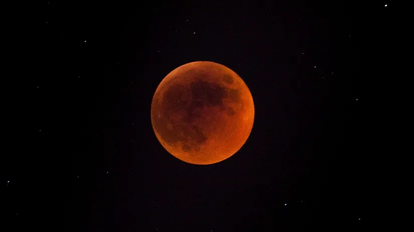 Descripción: La Luna se vuelve rojiza al pasar por la sombra terrestre.